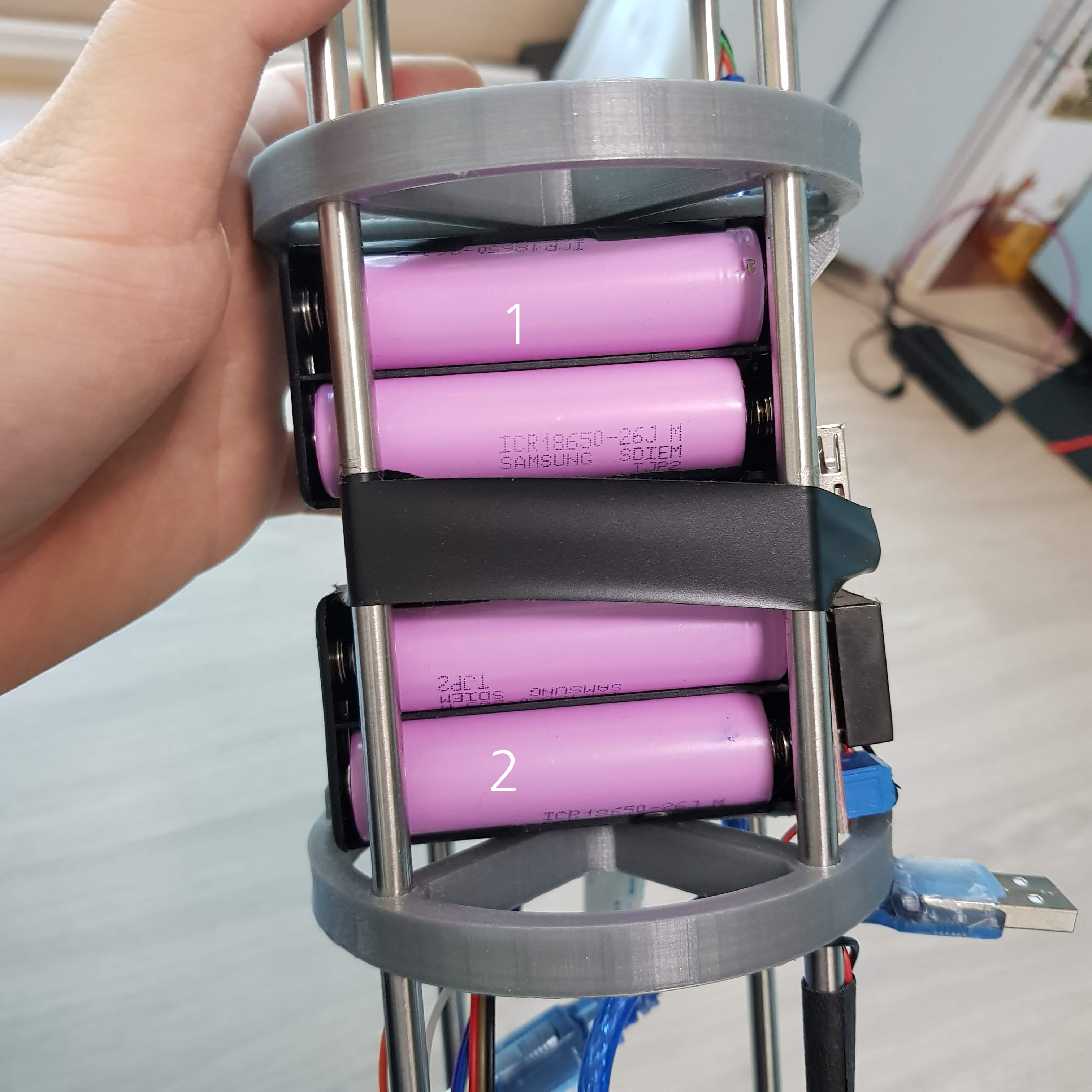 1번 배터리에서 라즈베리 파이에 전원을 공급하고, 2번 배터리에서 짐벌 및 지자기 센서를 작동시킨다. 마이크로 5핀인 라즈베리 파이 전원의 입력을 맞추기 위해 전원공급 보드(5V 3A 스텝다운 컨버터)를 1번 배터리에 연결하고 5cm의 USB to micro 5pin 케이블을 통해 라즈베리 파이로 연결하였다. 핸드폰을 넣기 위해 선정리한 것이다. 4번 레이어에는 5번레이어에 들어갈 서보모터를 제어하는 부분이다. 짐벌을 구동하기 위해서는 아두이노 나노에서 지자기의 지구자기장 값을 받아와 칼만 필터로 보정을 해줘야 한다. 매끄러운 짐벌의 구동에서는 필수적이며, 아두이노에서는 이를 하부기판의 모터드라이브를 통해 서보모터 2개를 제어한다. 또한, 하부기판은 배터리의 전원을 안정적으로 아두이노 나노와 모터로 보내기 위한 전력시스템을 포함한다.