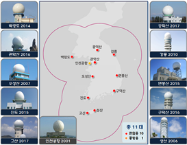 회귀분석을 위해서는 측정된 실제 강수량 자료가 필요한데, 우리는 지상레이더 관측 자료를 이용했다. 우리가 사용한 지상레이더 강수량 관측자료는 기상청에서 제공한 것이다. 기상청은 전국 11개소(백령도, 서울 관악산, 화천 광덕산, 강릉, 군산 오성산, 진도, 청송 면봉산, 부산 구덕산, 제주 고산과 성산, 인천공항)에 기상레이더를 설치하여 운영하고 있다.