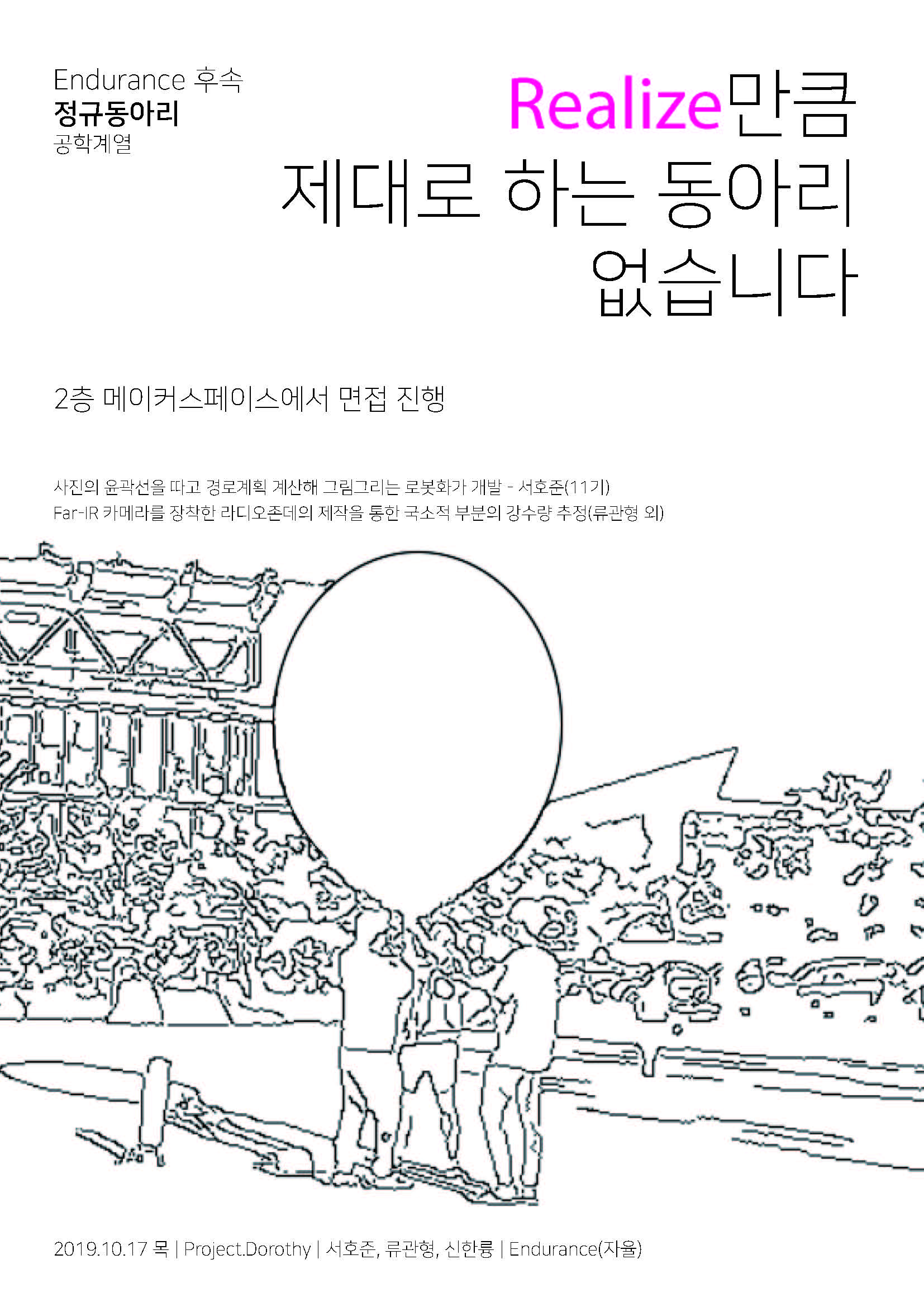 Endurance 후속 정규동아리 공학계열과 마젠타 색, Myriad Pro 글씨체의 Realize 로고는 홍보의 브랜딩 요소입니다.
