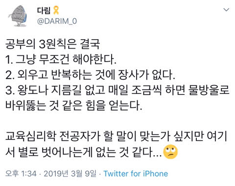 경험을 쌓는 고등학교 시절을 보내고, 지금 공부를 한다. 수많은 실험을 하고 논문을 쓰며 영상을 만들던 그 시절을 지나니 이제는 공부하고 싶나보다. 많은 사람이 공부함에 있어 대학, 성적, 취업 등 현실적인 이유를 생각하곤 한다. 왜 공부하는지보다 무엇을 공부하는지에 초점이 맞춰져 있었다. 만약 중고등학교 시절에 공부만 하며 보냈다면 나도 그들과 마찬가지였을 것이다. 하지만 많은 경험을 하다 보니 새로운 경험에 있어 공부가 필수 불가결한 존재임을 알게 됐다. 달리기할 때 숨을 쉬듯이 경험을 향해 달리려면 숨 쉬듯 공부해야 한다.