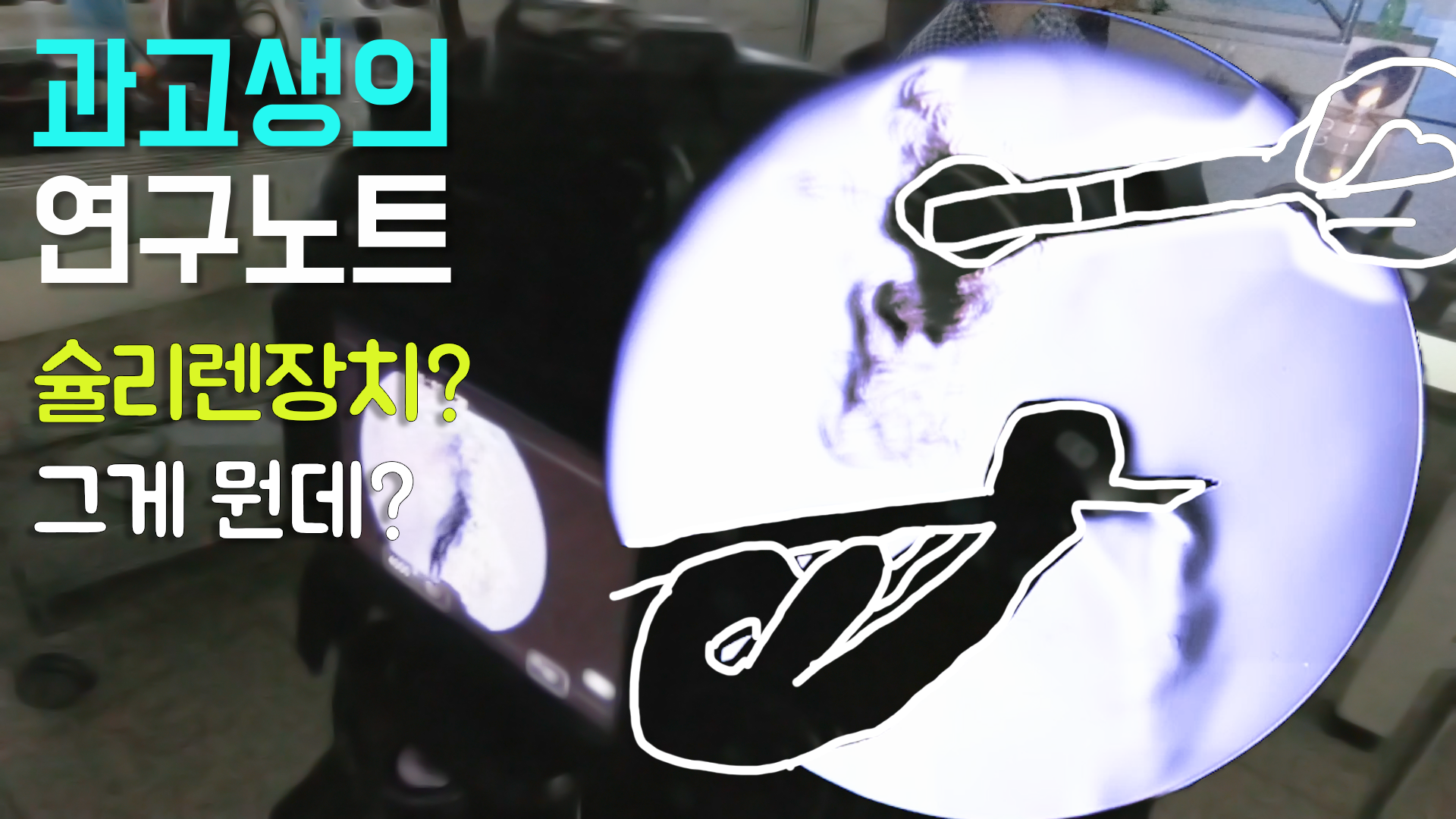 대사: 아래 나오는 영상을 보시면, 불꽃이 만드는 아지랑이가 보이는데요, 이는 공기의 온도 차에 의해 만들어진 대류가 발생하면서 슐리렌 장치에 나타나고 있는 모습입니다. 소리, 즉 음파 또한 공기의 압력 차로 전달되는 파동입니다. 이것도 공기가 움직이므로 슐리렌 장치에 나타나는데요, 안녕하세요 연구 노트의 관형입니다. 오늘 이 영상에서는 슐리렌 장치의 원리, 만드는 과정, 그리고 이를 이용한 음파 실험 몇 가지를 해보겠습니다. 자료화면: Harvard Schlieren – 촛불 켜는 화면 |